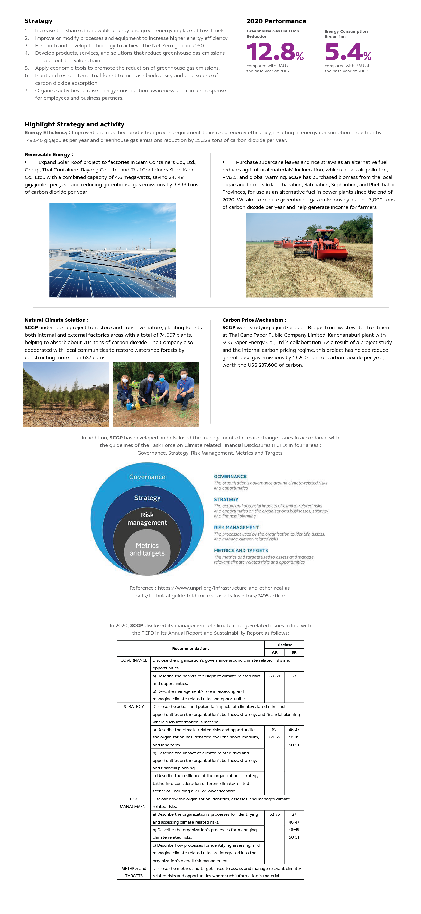 Acute impacts of climate change and global warming necessitate collaboration worldwide in effort to reduce greenhouse gas emissions and deploying innovations for carbon removal. To increase operational challenges and in accordance with the determination, SCGP has set a target in carbon emission from the company’s operations to be Net Zero Carbon by 2050 and aiming to control limiting global warming to 1.5 degrees celsius under the Paris Agreement. Our efforts are subject to strict business governance and execution in line with international norms among all business units working to achieve the target.