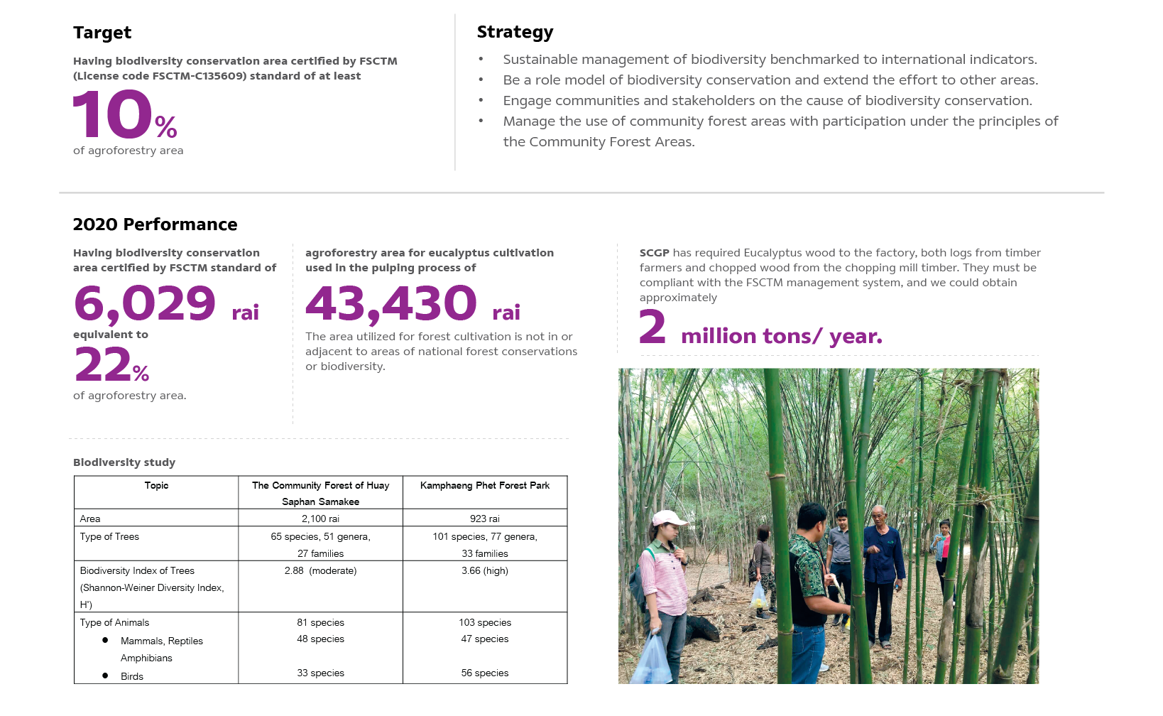SCGP has strong determination to maintain the ecosystem's balance by managing biodiversity and ecosystems according to the community's sustainability and conservation. We have been applying international indicators to benchmark our operations, intending to be a role model in biodiversity conservation.