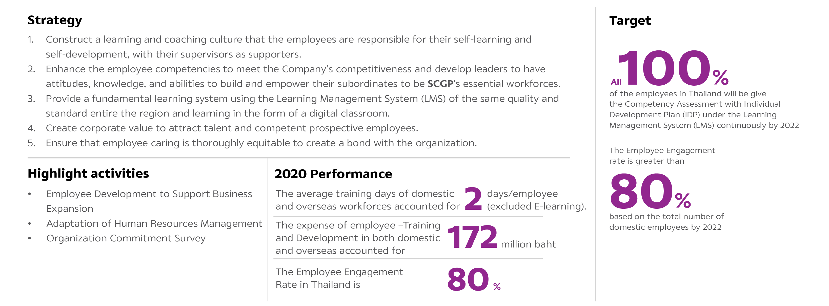 SCGP realizes the rapid change in the fierce competition in today's business and diverse demand of customer needs. The Company, therefore, strives to develop employee competency to cope with current and future changes. Focusing on digital learning and self-learning promotes lifelong learning, so our employees can enrich their new knowledge and skills promptly responding to rapid change.